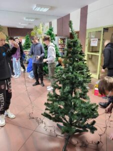 Wspólne ubieranie choinki szkolnej