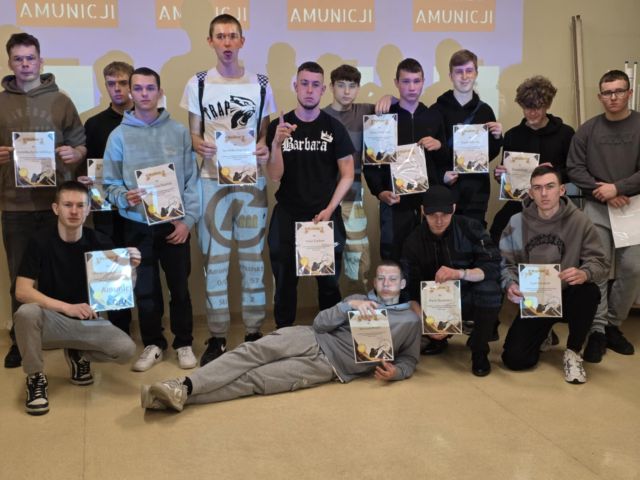 13 marca 2025 roku na wirtualnej strzelnicy w naszej szkole odbyły się I Zawody Strzeleckie pod patronatem dyrektora Branżowej Szkoły I Stopnia w Buku. Samorząd Uczniowski we współpracy z panem Pawłem Kempą zaprosił do strzeleckich zmagań reprezentantów klas: 1b, 2b, 2d i 3b. Do dyspozycji strzelcy mieli pistolety oraz karabiny, przystosowane do strzelania wirtualnego, do specjalnych tarcz, rejestrujących punkty „trafienia”. W rywalizacji drużynowej triumfowała ekipa z klasy 1b, wyprzedzając reprezentację klasy 2d, która uplasowała się na drugim miejscu. Na trzecim stopniu podium znalazła się drużyna klasy 2b. Umiejętności strzeleckie miały okazję rozwijać również dziewczęta, które wykazały się celnością i determinacją. Gratulujemy wszystkim uczestnikom osiągniętych wyników i sportowej rywalizacji na wysokim poziomie!
