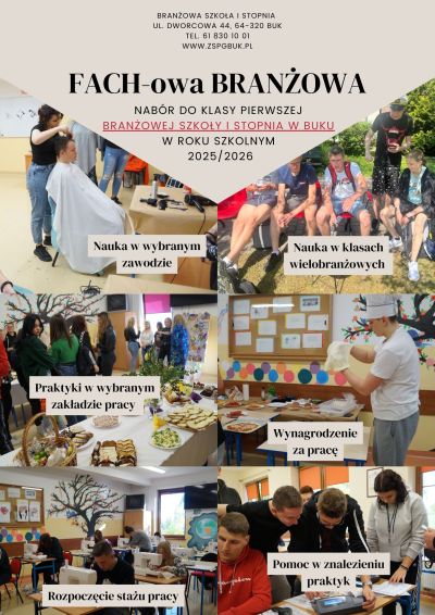 Zachęcamy do podjęcia nauki w Branżowej Szkole I Stopnia w Buku i zdobycia konkretnego zawodu. Taki wybór kształcenia zapewnia szybsze wejście na rynek pracy, zdobycie praktycznych umiejętności cenionych przez pracodawców oraz wcześniejszą niezależność finansową. Wybierając naukę zawodu, uczniowie mają realne szanse na znalezienie stabilnego i dobrze płatnego zatrudnienia.