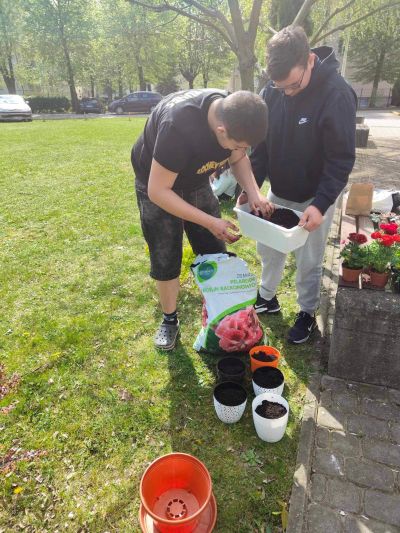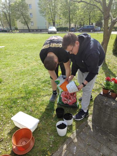 Kolejne ozdobne kwiaty pojawiły się w naszej szkolnej przestrzeni. Tym razem uczniowie klasy 1a, 2a i 2c posadzili kolorowe roślinki, m.in.: bratki, goździki, dzwonki, pelargonie i aksamitki, które tymczasowo musieliśmy przenieść do budynku, żeby zabezpieczyć je przed zimnem. Mamy nadzieję, że tym sposobem odstraszymy chłodną aurę i sprowokujemy wiosnę, żeby ciepła i słoneczna rozgościła się na dobre 😊