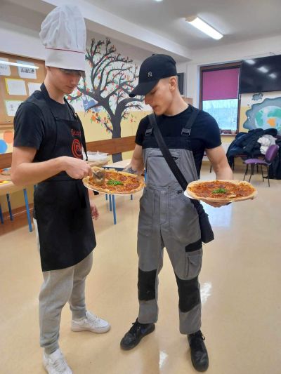 8 lutego 2024 roku celebrowaliśmy w naszej szkoły święto pizzy, zapewniając wszystkim uczniom doskonałą zabawę. W roli szefa kuchni doskonale spisał się Janek Glinka z klasy 3a, któremu towarzyszyli pomocnicy: Mateusz Łukaszewski i Dawid Górczak. Nad sprawną organizacją kulinarnych popisów czuwała pomysłodawczyni tego wydarzenia – pani Kamila Kozdrowska. Przez cały dzień nasi dzielni kucharze wałkowali i formowali ciasto, smarowali je sosem pomidorowym, nakładali ulubione składniki i posypywali serem… Gdy wszystko było już gotowe, kolejne pizze wędrowały do piekarnika, a zapach tego popularnego placka unosił się po całej szkole. Najwięcej radości sprawiła wszystkim degustacja tych wspaniałych wypieków – po prostu palce lizać! 😊