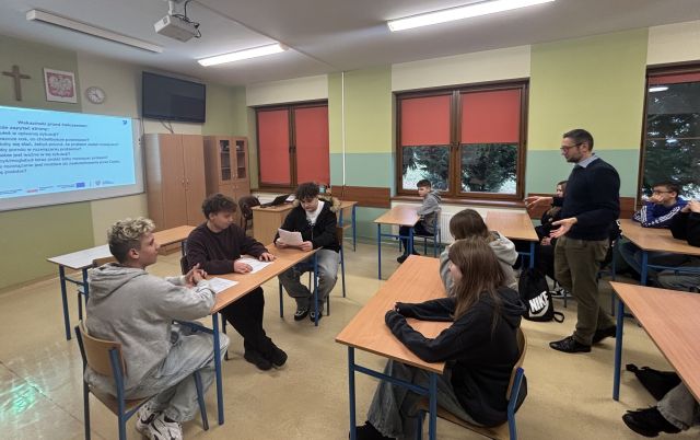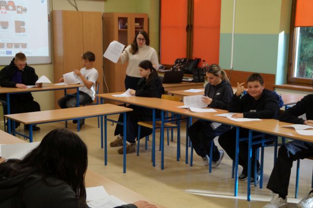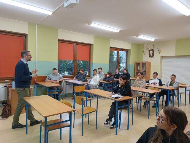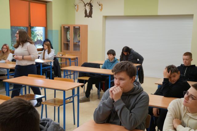 Uczniowie klasy 1b i 3b w dniu 2 grudnia 2025 roku odbyli zajęcia na wirtualnej strzelnicy. W bezpiecznych i całkowicie kontrolowanych warunkach młodzież poznawała podstawy posługiwania się bronią oraz zasady odpowiedzialnego zachowania w sytuacjach wymagających opanowania. Zajęcia w takiej formie zwiększają zaangażowanie uczniów, rozwijają ich kompetencje obronne i uczą odpowiedzialności. To atrakcyjne i skuteczne narzędzie pozwala łączyć tradycyjną edukację z nowoczesnymi technologiami.