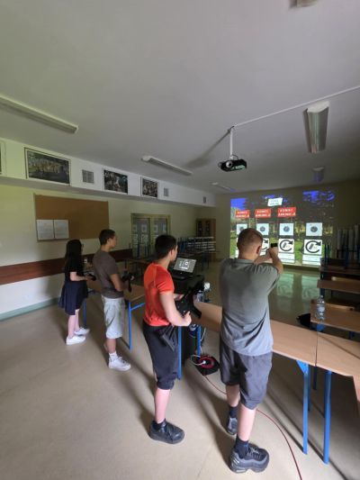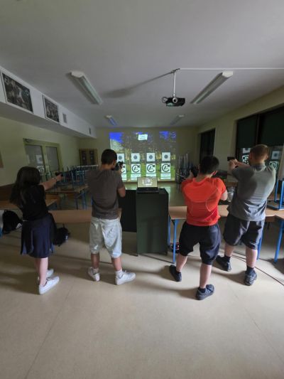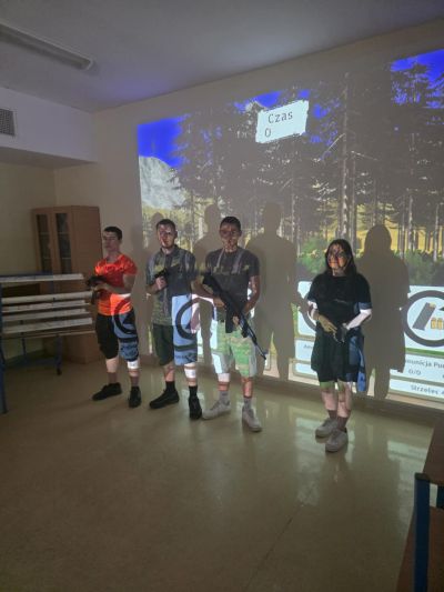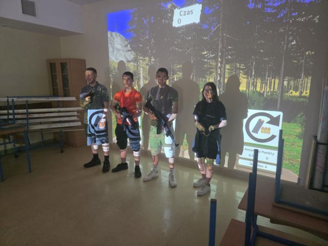 Chętni uczniowie naszej szkoły wzięli udział w dodatkowych zajęciach na wirtualnej strzelnicy. Ta ciekawa forma zajęć praktycznych przeprowadzona została przy użyciu szkolnego symulatora z replikami broni i ekranem projekcyjnym. Pozyskana nowoczesna technologia pozwala na innowacyjne nauczanie w ramach edukacji dla bezpieczeństwa.
