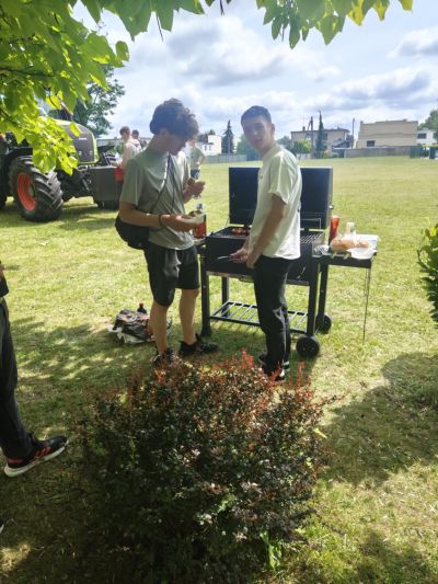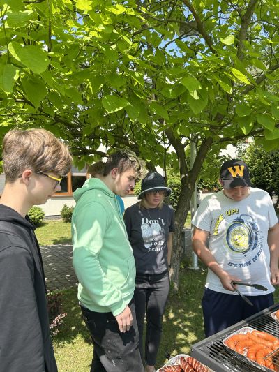 17 czerwca br. uczniowie II zmiany zorganizowali na boisku szkolnym grilla. W menu nie zabrakło klasyków – pachnących kiełbasek, pieczonego chleba i domowego ciasta. To wydarzenie było nie tylko smakowitym akcentem kończącym rok szkolny, ale także okazją do integracji i wspólnej zabawy.