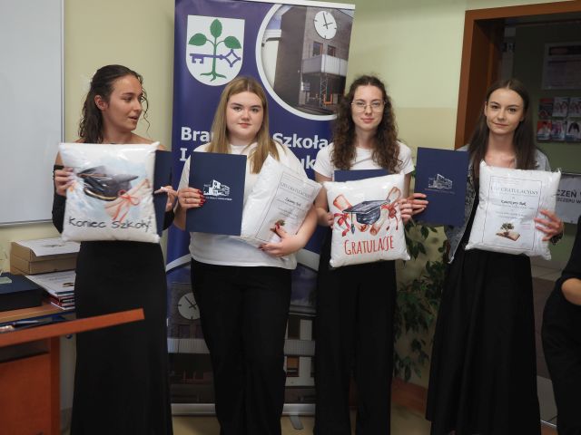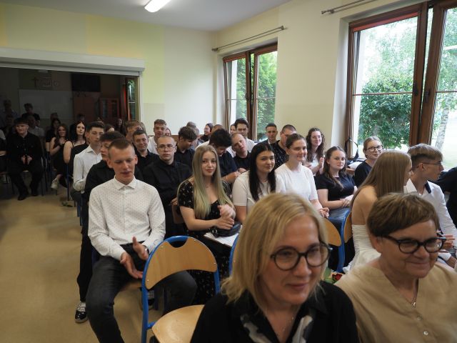 W piątek 27 czerwca br. odbyło się uroczyste zakończenie roku szkolnego dla uczniów klas pierwszych i drugich. Nastąpiło podsumowanie wspólnej nauki i pracy oraz wręczenie wyróżnień, nagród i dyplomów. Najlepsze wyniki w nauce i świadectwa z paskiem otrzymały uczennice: Adrianna Misiak, Gabriela Lasik, Martyna Bendlewska i Zuzanna Skarupa. Wszystkim uczniom gratulujemy i życzymy udanego wakacyjno-urlopowego czasu 🙂