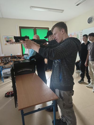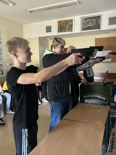 13 marca 2025 roku na wirtualnej strzelnicy w naszej szkole odbyły się I Zawody Strzeleckie pod patronatem dyrektora Branżowej Szkoły I Stopnia w Buku. Samorząd Uczniowski we współpracy z panem Pawłem Kempą zaprosił do strzeleckich zmagań reprezentantów klas: 1b, 2b, 2d i 3b. Do dyspozycji strzelcy mieli pistolety oraz karabiny, przystosowane do strzelania wirtualnego, do specjalnych tarcz, rejestrujących punkty „trafienia”. W rywalizacji drużynowej triumfowała ekipa z klasy 1b, wyprzedzając reprezentację klasy 2d, która uplasowała się na drugim miejscu. Na trzecim stopniu podium znalazła się drużyna klasy 2b. Umiejętności strzeleckie miały okazję rozwijać również dziewczęta, które wykazały się celnością i determinacją. Gratulujemy wszystkim uczestnikom osiągniętych wyników i sportowej rywalizacji na wysokim poziomie!