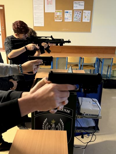 Uczniowie klasy 1b i 3b w dniu 2 grudnia 2025 roku odbyli zajęcia na wirtualnej strzelnicy. W bezpiecznych i całkowicie kontrolowanych warunkach młodzież poznawała podstawy posługiwania się bronią oraz zasady odpowiedzialnego zachowania w sytuacjach wymagających opanowania. Zajęcia w takiej formie zwiększają zaangażowanie uczniów, rozwijają ich kompetencje obronne i uczą odpowiedzialności.